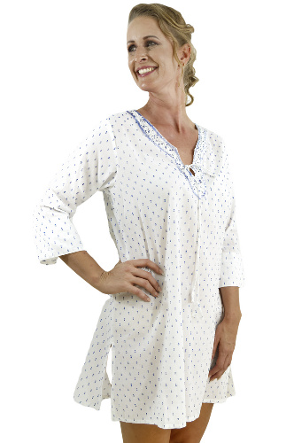 GB0014 - AL 5339 White and Blue Detailed Neck Cotton Blouse
